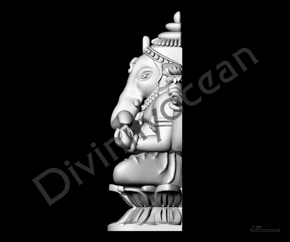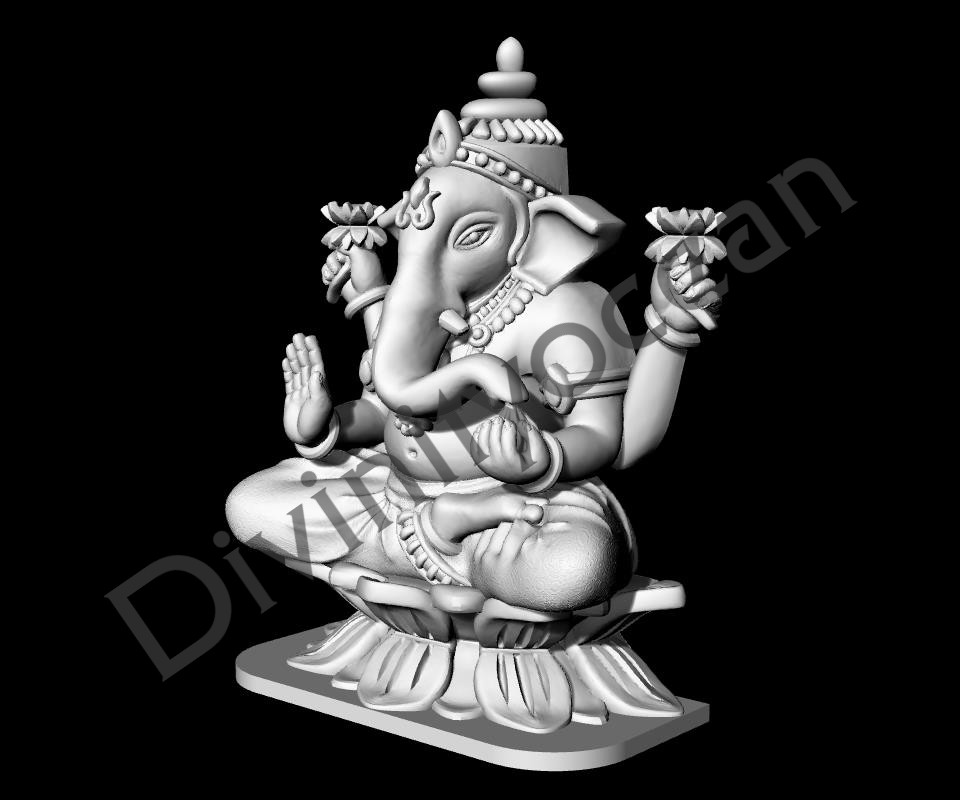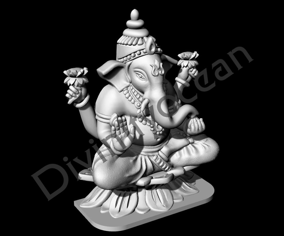 This exquisite Ganesh on Lotus idol is a captivating depiction of the revered Hindu god, seated gracefully on a fully bloomed lotus flower. Crafted with meticulous attention to detail, the sculpture showcases Lord Ganesha’s iconic elephant head, adorned with a single tusk, and his four hands holding symbolic objects. The lotus, a symbol of purity and enlightenment, serves as a perfect pedestal for the divine being. Whether placed in a home altar, office space, or gifted to a loved one, this Ganesh on Lotus idol is a timeless piece of religious art that adds a touch of devotion and elegance to any environment.