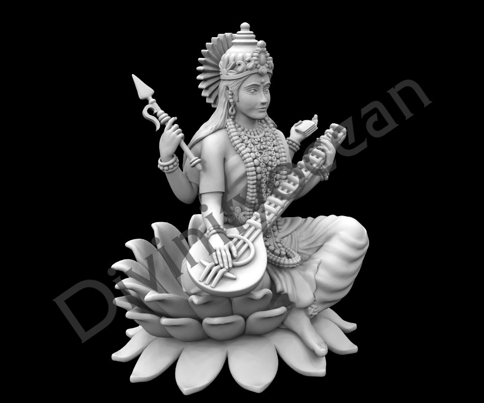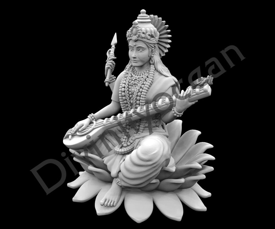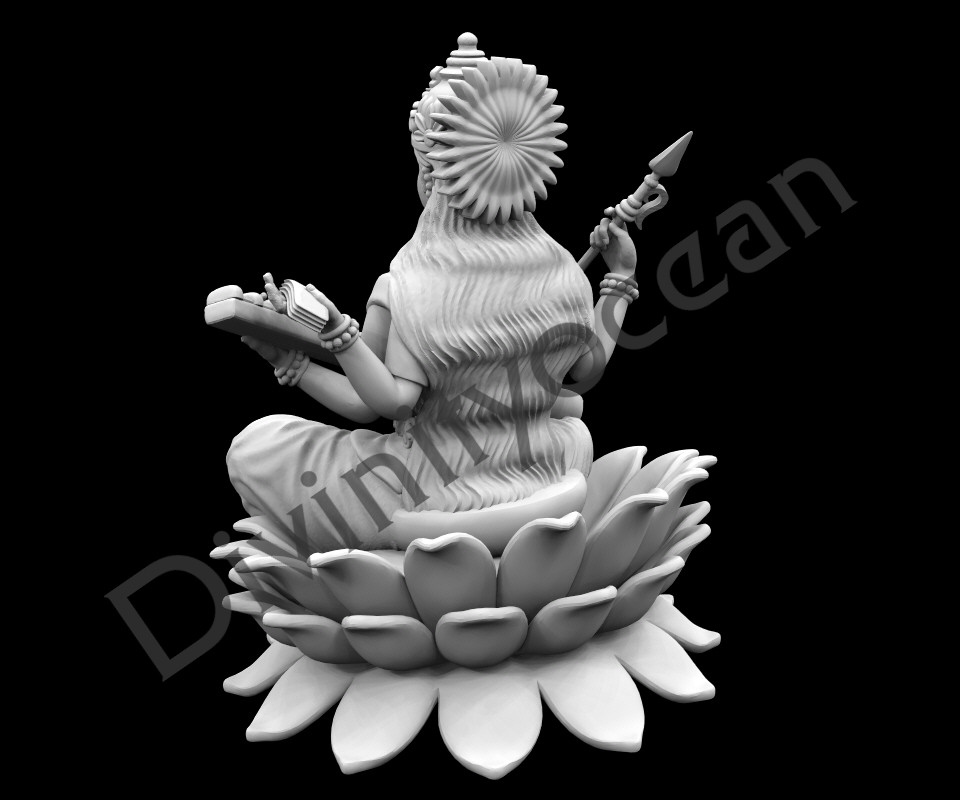 The goddess Saraswati is often depicted seated on a lotus, which symbolizes purity, enlightenment, and the pursuit of knowledge. The lotus throne represents transcendence over the material world and the idea that Saraswati’s wisdom is beyond earthly limitations